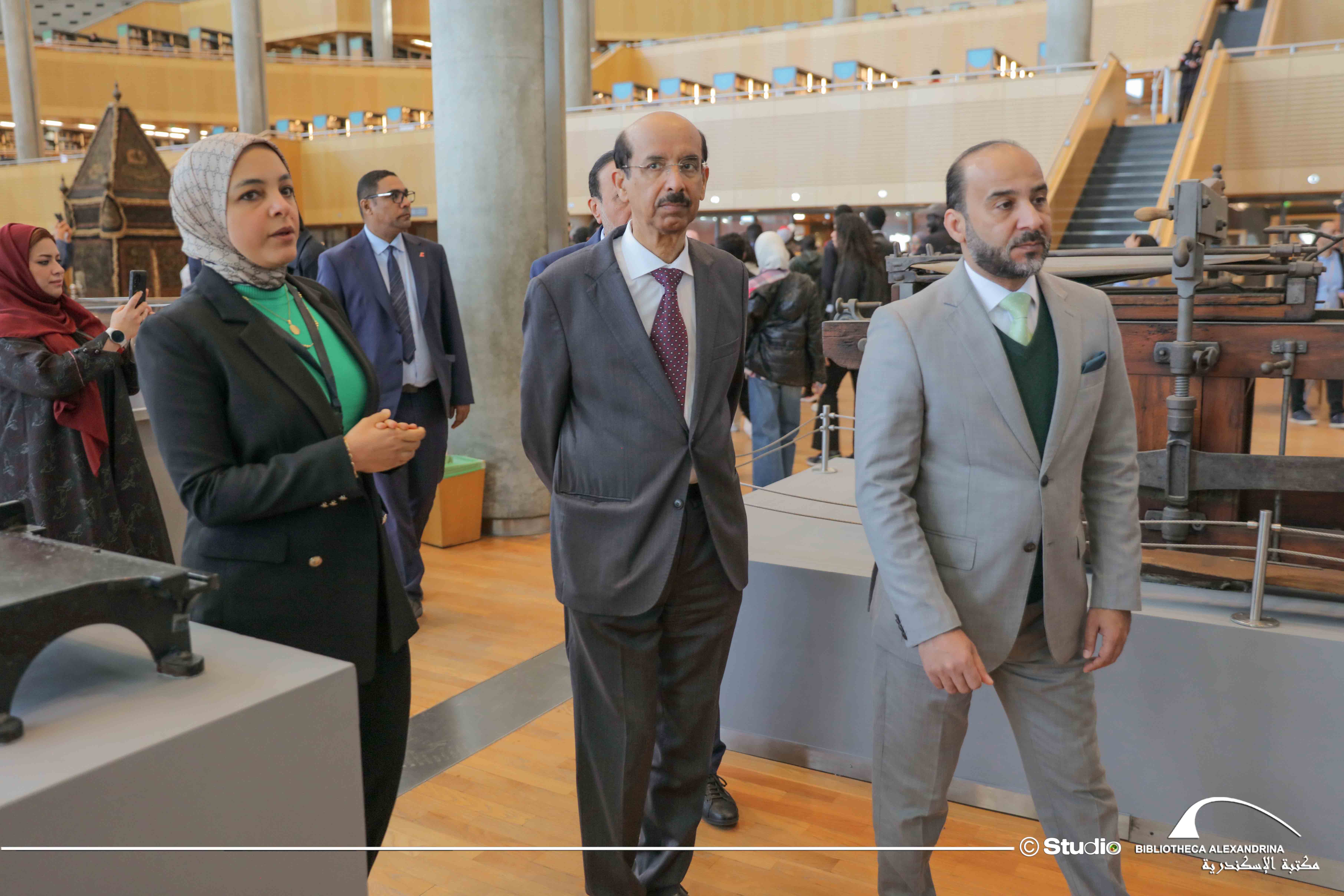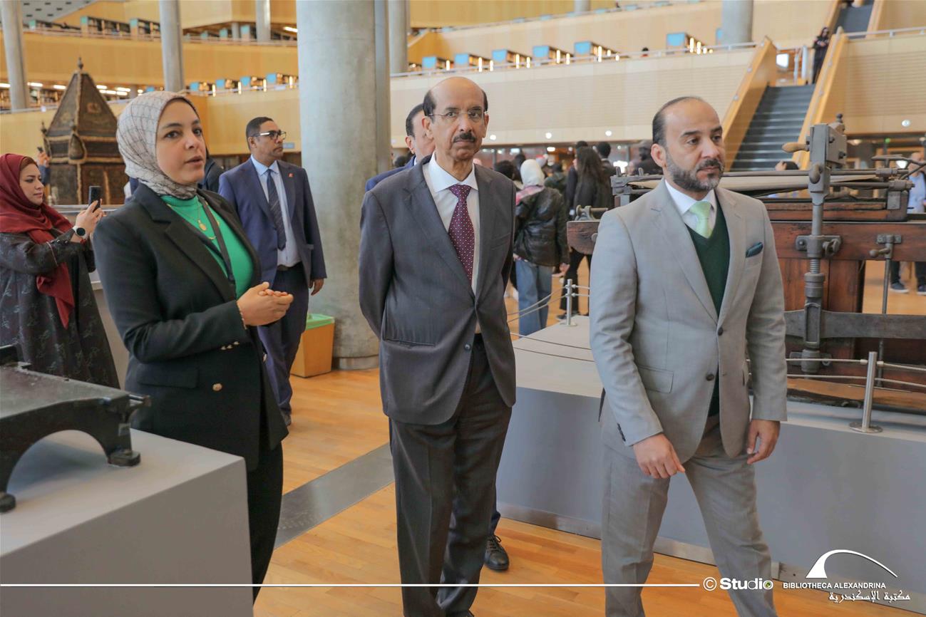Dr. Mohamed Soliman accompanied Dr. Mohamed Al-Murr and his delegation on a tour of the Library’s various landmarks and centers. They were introduced during the tour to the Library’s major cultural, digital, and technological projects, as well as its knowledge and heritage material.
